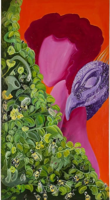 I work primarily in oil and acrylic, employing a layered and iterative process. My paintings combine controlled detail with textured, emotive backgrounds to evoke internal conflict and fragmented memory. These works are deeply influenced by personal experience, dream logic, and symbolic storytelling. At the centre of my visual language are mystical, hybrid creatures—figures that embody emotional states and psychological mutations. These beings function as both self-portraits and universal archetypes of suffering, resistance, and resilience. Referencing religious iconography, myth, and surrealism, I construct a world where the sacred and the broken coexist.