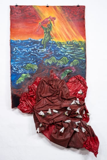 Working across painting, fabric, and textured surfaces, I explore how material itself can embody emotion. Thick pigment, staining, distortion, and tactile intervention become carriers of memory. These works do not offer closure or redemption. Instead, they stand as acts of witness—holding space for personal truth while acknowledging a collective wound still struggling to be named.